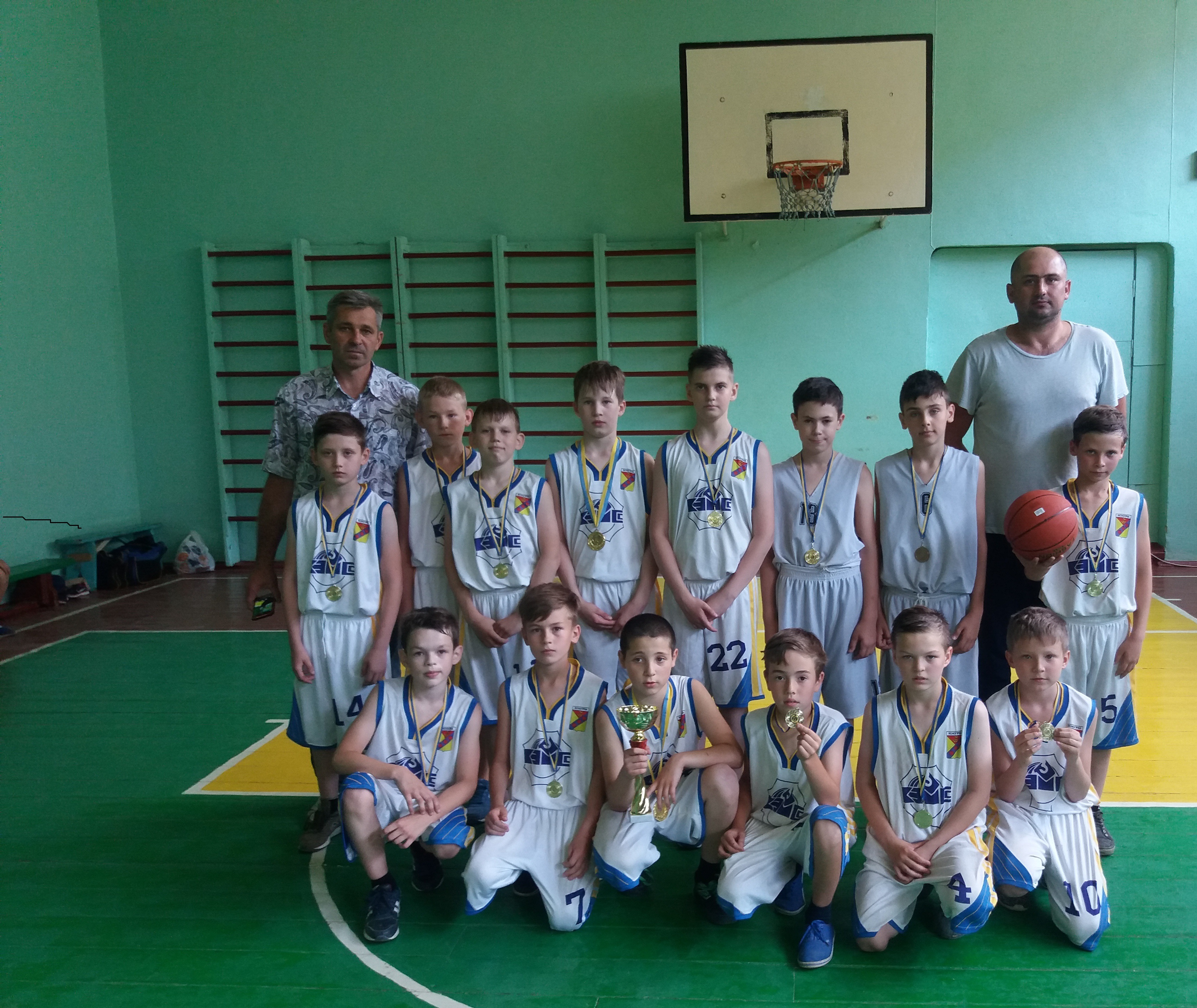 Наши юные победители были награждены кубком и медалями Донецкой области ассоциации баскетбола за занятое l место.